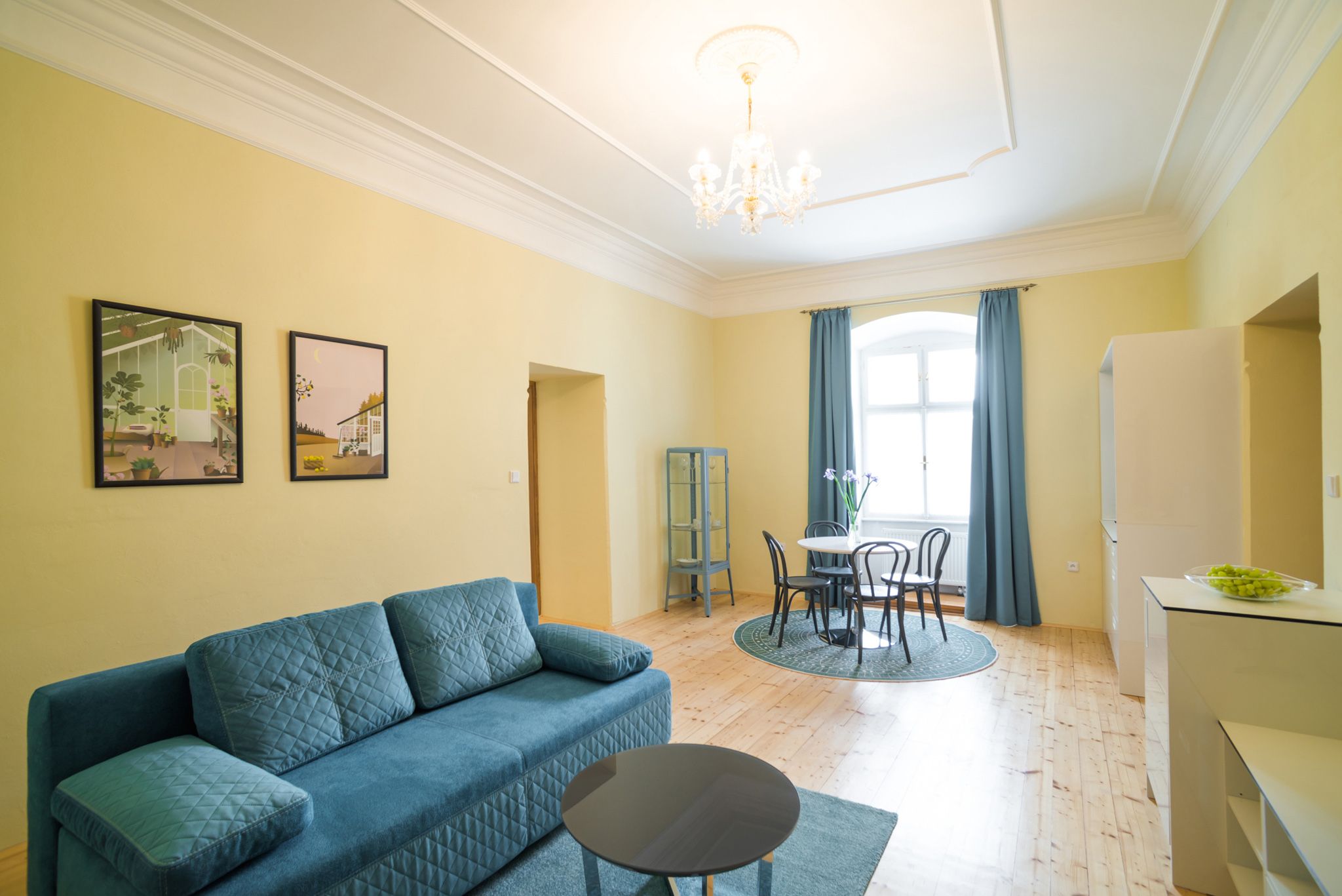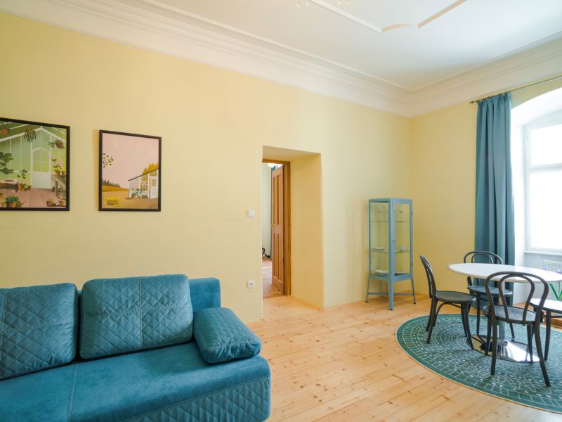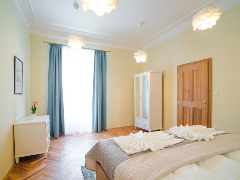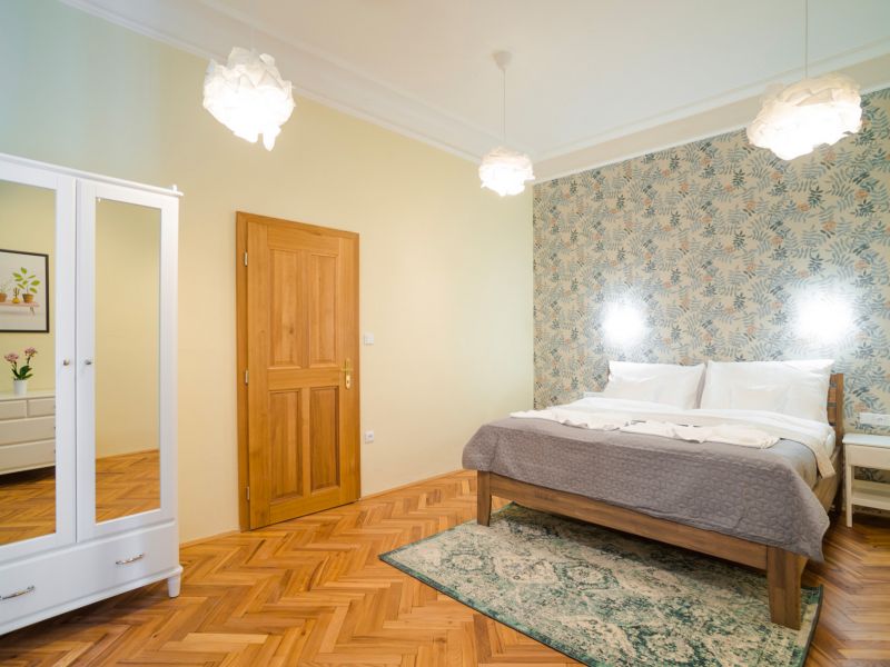 Disponuje obývacím pokojem s kuchyňským a jídelním koutem, plně vybavenou kuchyňskou linkou s lednicí, indukcí, mikrovlnou troubou a myčkou nádobí. K dispozici je rozkládací sedací souprava, TV, klimatizace, WIFI, koupelna se sprchovým koutem a WC, ložnice s manželskou postelí. Vhodné pro dvě dospělé osoby.