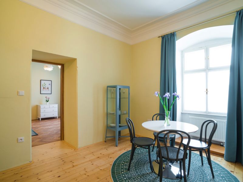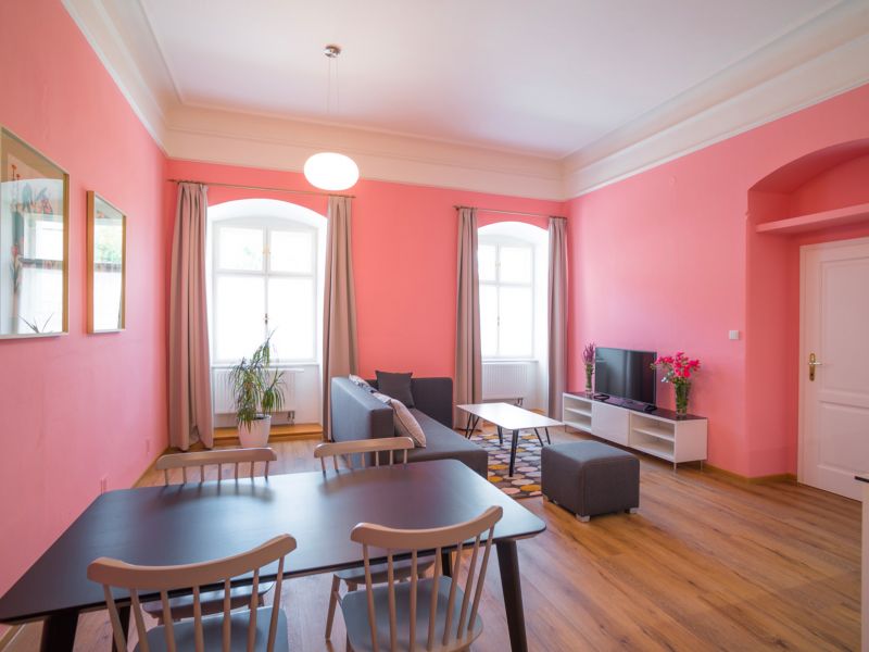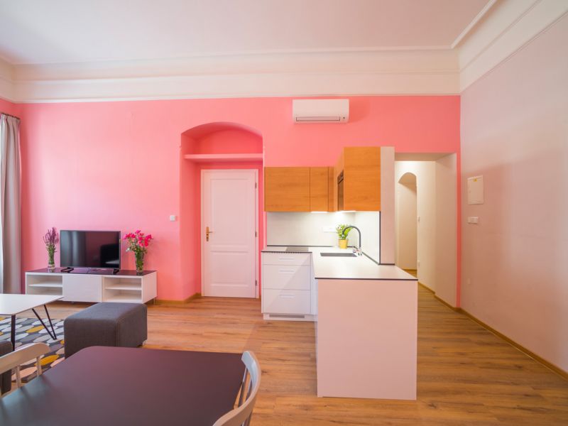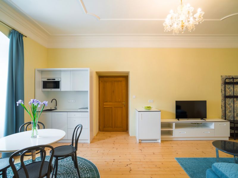 The apartments on the first and second floors of the building are oriented so that from each window there is a romantic view directly onto the Valtice chateau, while the apartment on the ground floor has an entrance that leads directly into the courtyard garden and has a view of the Spanish riding hall.