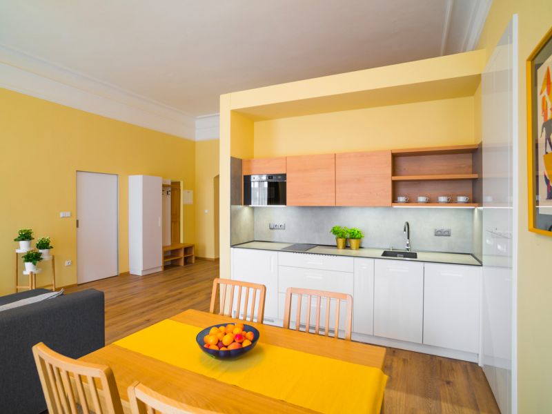 The apartments on the first and second floors of the building are oriented so that from each window there is a romantic view directly onto the Valtice chateau, while the apartment on the ground floor has an entrance that leads directly into the courtyard garden and has a view of the Spanish riding hall.