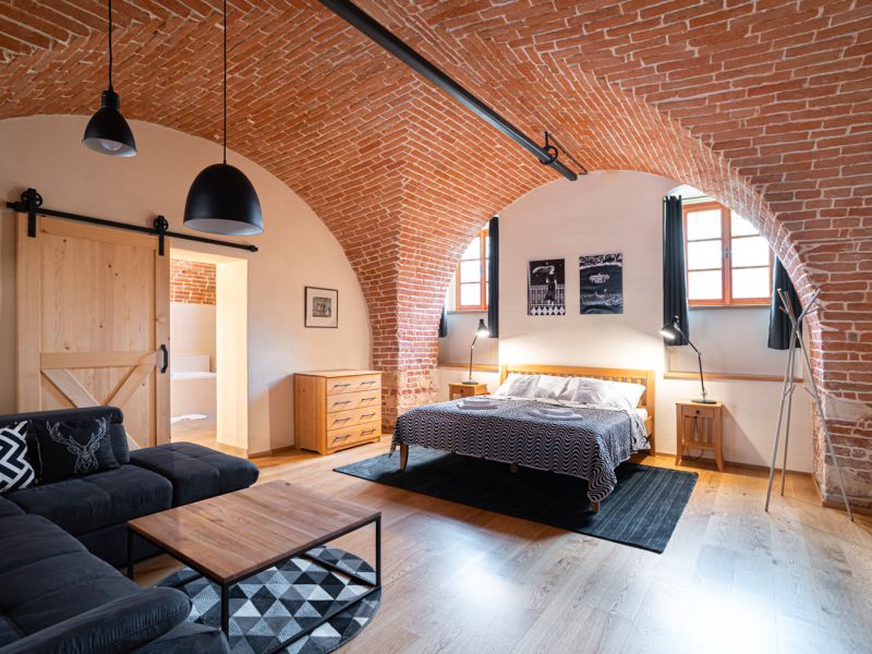 Six luxury apartments were established during the reconstruction; one is located on the ground floor, three are on the first floor, and two are on the second. Each of them is distinctive and individually designed by the designer, which gives its visitors a relaxing and comfortable stay.
